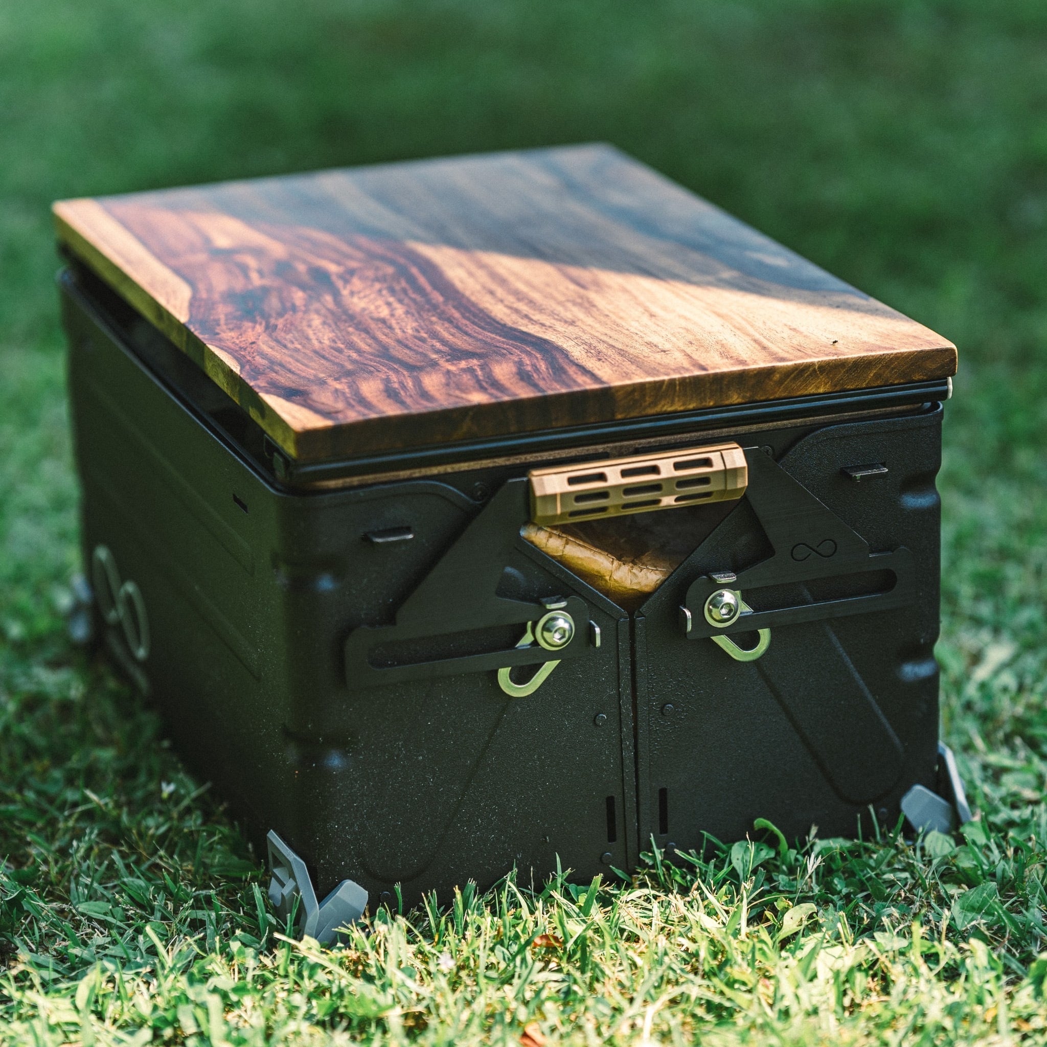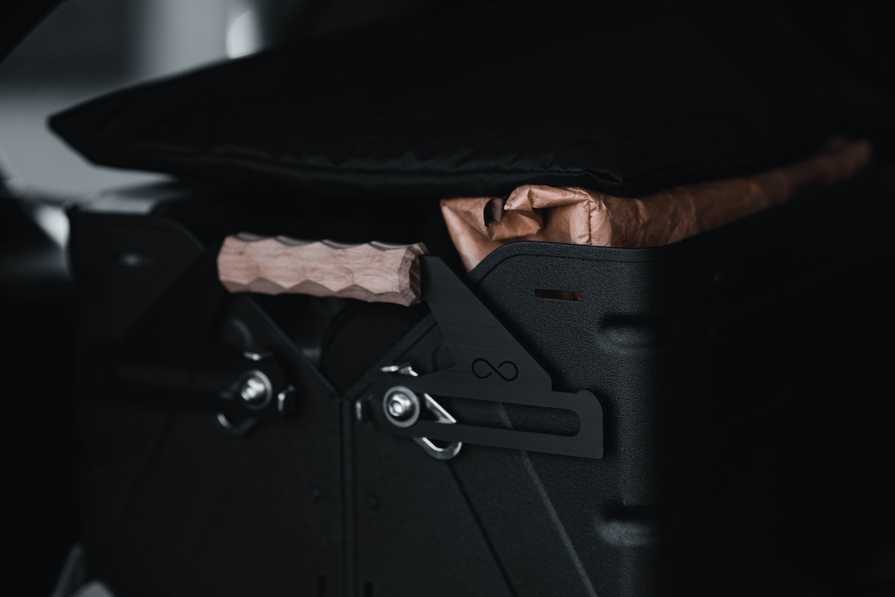 シェルコンは男のロマンとも言われるほど、多くのアウトドア愛好家に愛されるアイテムです。infinity worksでは、シェルコンのカスタムに欠かせないハンドルプレートを開発し、シンプルかつリッチなデザインを実現しました。