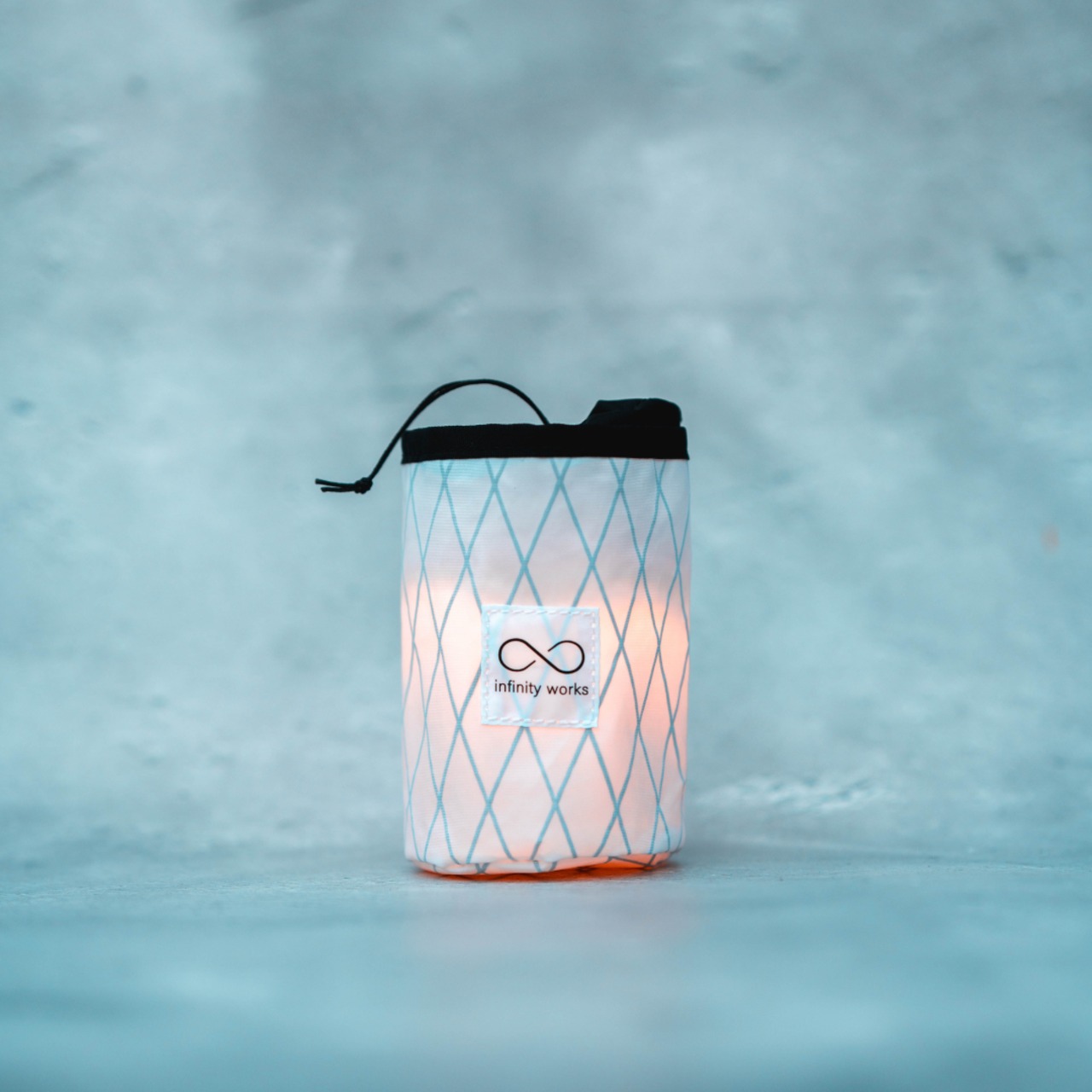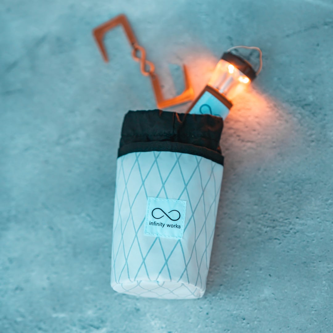 普段は小型LEDランタンやフックを入れる小袋として使用し、LEDランタンを吊り下げた後は、光を柔らかく拡散させるランタンシェードとして活用することが出来ます。