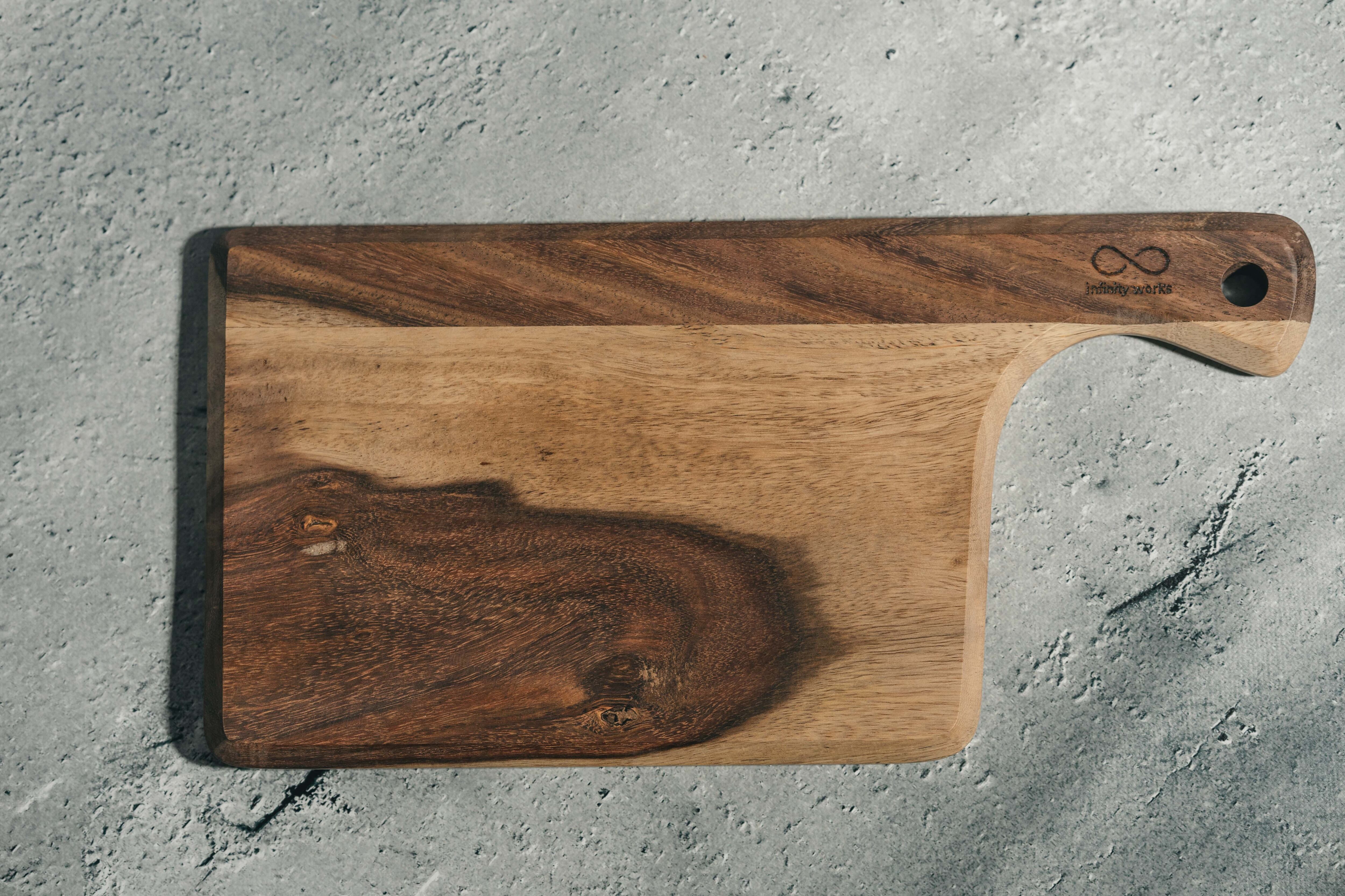 カッティングボードとしての使用はもちろんのこと、食事を盛り付けてもおしゃれにキマります。